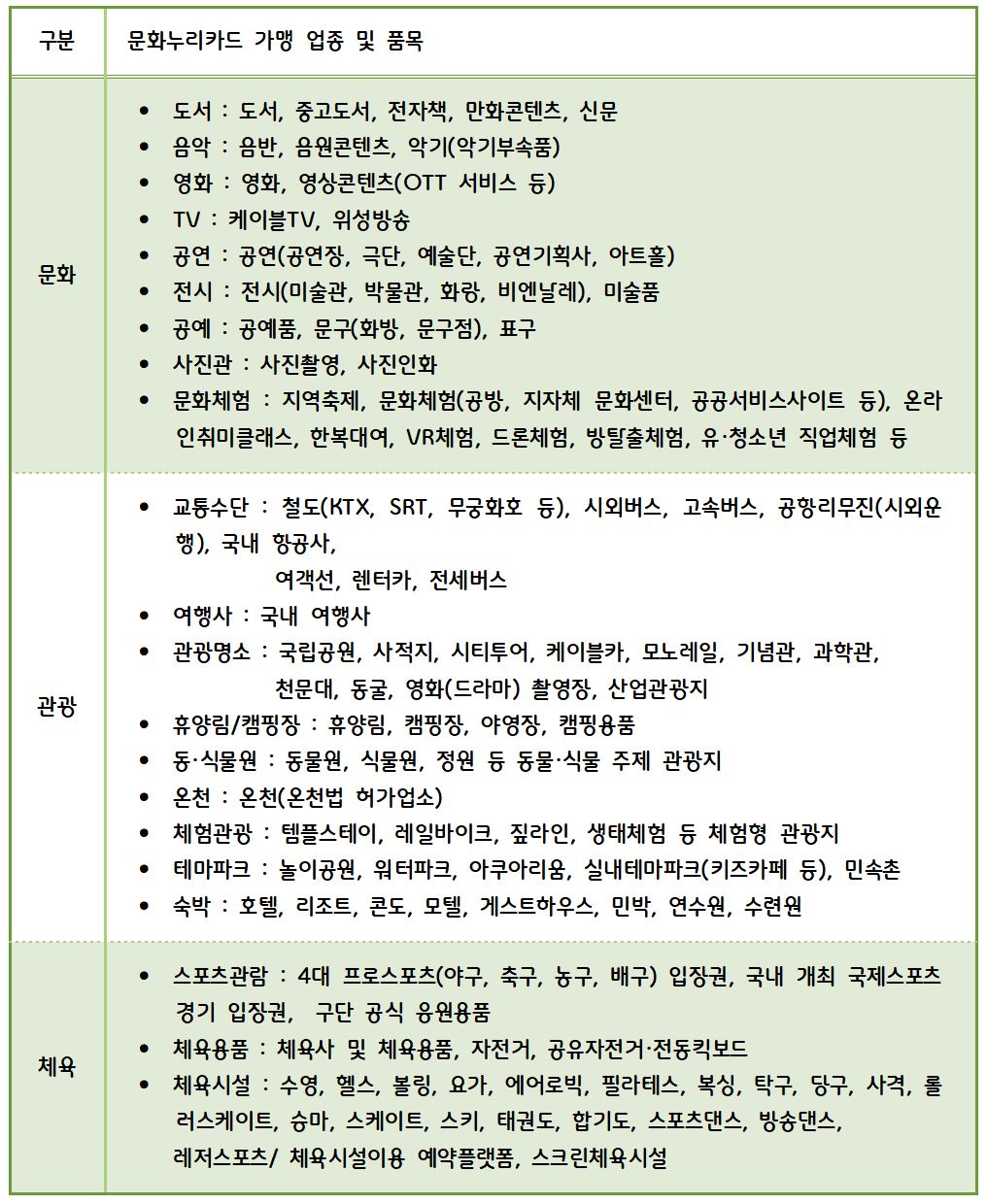 문화누리카드 사용처